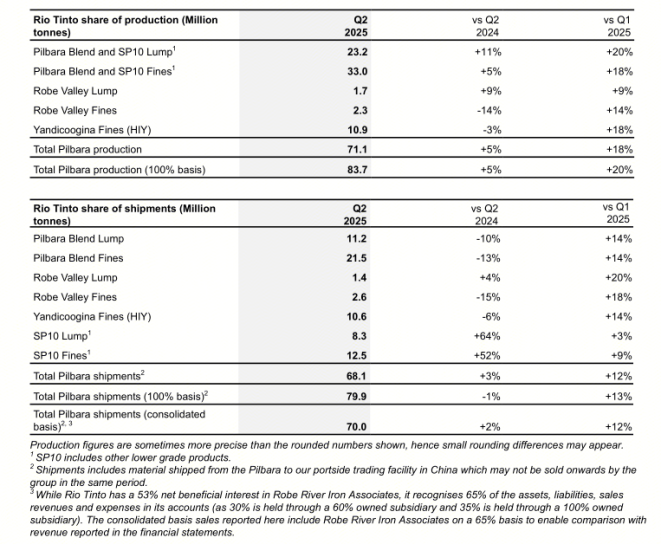 此外,在北京时间2025年7月16日,力拓(Rio Tinto)发布二季度产销报告。报告称,其澳大利亚铁矿在第二季度的产量创下自2018年以来的同期最高纪录。
